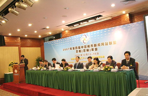 2007年12月13日至15日,由廣州日報大洋網(wǎng)承辦、方正阿帕比協(xié)辦的“2007年度第四屆中國城市新聞網(wǎng)站聯(lián)盟總裁(總編)年會(huì )” 在廣州隆重舉行。國家新聞出版總署報刊管理司副司長(cháng)林江、國務(wù)院新聞辦公室網(wǎng)絡(luò )局綜合處處長(cháng)高劍云,廣東省人民政府新聞辦公室副主任莫高義、廣州市委宣傳部副部長(cháng)李哲夫等相關(guān)領(lǐng)導出席了本次會(huì )議,與會(huì )嘉賓還有來(lái)自大洋網(wǎng)、中國寧波網(wǎng)、大連天健網(wǎng)、深圳新聞網(wǎng)、青島新聞網(wǎng)、武漢長(cháng)江網(wǎng)、南京龍虎網(wǎng)、杭州網(wǎng)、湖南星辰在線(xiàn)等40余家新聞網(wǎng)站媒體的總裁或總編。