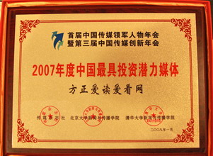 愛(ài)讀愛(ài)看網(wǎng)榮獲“2007年度中國最具投資潛力媒體”獎
