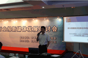 方正阿帕比常務(wù)副總經(jīng)理鄭偉在研討會(huì )上做了“新興傳媒技術(shù)在報業(yè)中的應用”報告