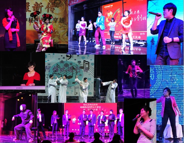 阿帕比作為一家高科技創(chuàng )新型企業(yè),員工既年輕有為,又多才多藝。本次會(huì )議第二部分之節目匯演也全由方正阿帕比自己的員工完成。他們專(zhuān)業(yè)的歌聲、勁爆的舞蹈、睿智的小品、自嘲的朗誦獲得觀(guān)眾無(wú)數掌聲。其中去年熱播的電視連續劇《甄嬛傳》被研發(fā)中心的技術(shù)大牛們搬上了舞臺,小品內容結合阿帕比電子書(shū)和apabi reader for IOS,將演員從一本電子書(shū)中穿越到另一本電子書(shū),搞得“四郎”眼花繚亂。營(yíng)銷(xiāo)中心各位總監們自創(chuàng )的詩(shī)朗誦,通過(guò)爆笑的臺詞如“春從來(lái)不是叫出來(lái)的,而是真刀真槍的干出來(lái)的”,表達努力苦干的決心;同時(shí)自嘲自己是“雞”,“是努力下蛋的母雞,是辛勤耕種的播種機。”看著(zhù)平時(shí)一本正經(jīng)的各位總監們如此無(wú)下限的自嘲自己,全場(chǎng)觀(guān)眾笑到飆淚。